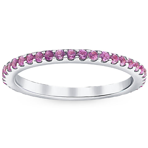 3/4Ct Pink Sapphire Stackable Ring Wedding Band 10k White Gold