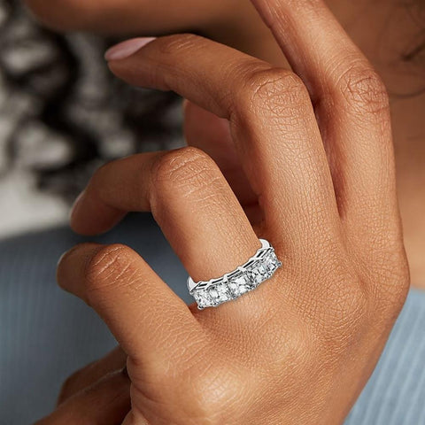 1 1/2ct Emerald Diamond Eternity Ring 14K White Gold
