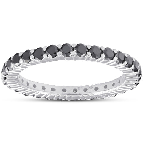 1 1/2ct Treated Black Diamond Eternity Ring 14K Black Gold