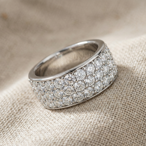 1 1/2Ct Pave 3-Row Diamond Wedding Anniversary Ring 10k Gold Lab Grown