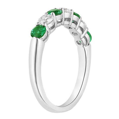 1 1/2Ct TW Round Diamond & Created Emerald Wedding Anniversary Ring in 14k Gold