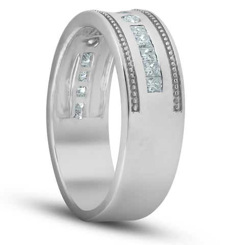 1/2 Ct Mens Blue Diamond Princess Cut Wedding Ring 10k White Gold