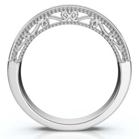 Personalize your wedding band with up to 26 characters including spaces. We offer a legible block font for all rings without diamonds.