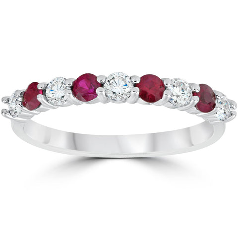 1/2CT Ruby & Diamond Wedding Ring 10K White Gold