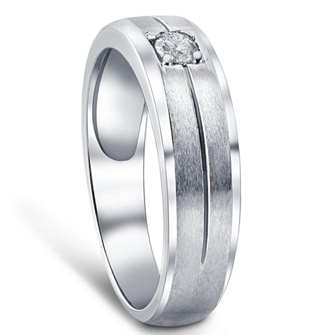 1/6Ct Diamond Brushed Mens Wedding Band in White, Yellow, or Rose Gold Lab Grown
