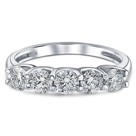 1Ct T.W. Five Stone Diamond Wedding Ring 14k White or Yellow Gold Lab Grown
