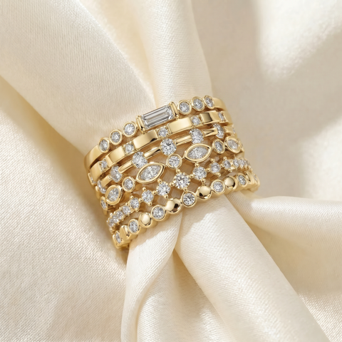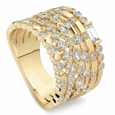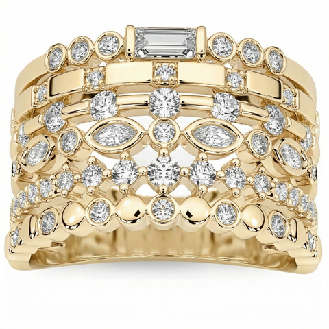 1Ct Stackable Diamond Ring Gold Lab Grown 12mm Wide