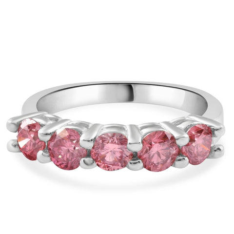 1Ct TW Five Stone Pink Diamond Wedding Ring Lab Grown Band 14k White Gold