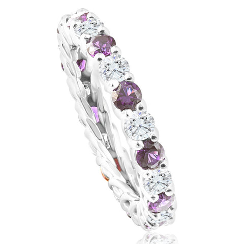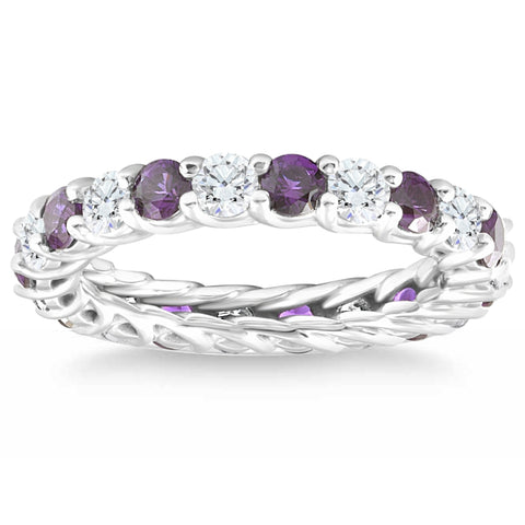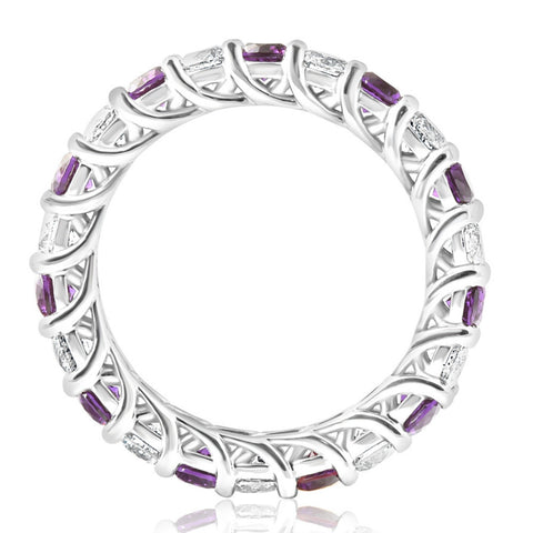 2 1/2Ct Amethyst & Diamond Eternity Ring 14k White Gold