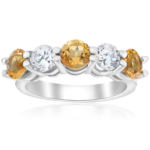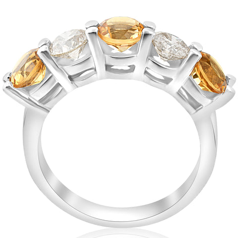 2 1/2ct Citrine & Diamond 5-Stone Ring 14K White Gold