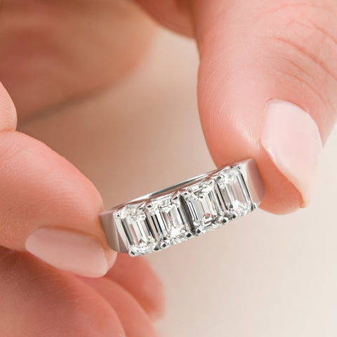 2 1/4Ct Tetrad Diamond Ring Emerald Cut Anniversary Band 14k Gold/Pt Lab Grown