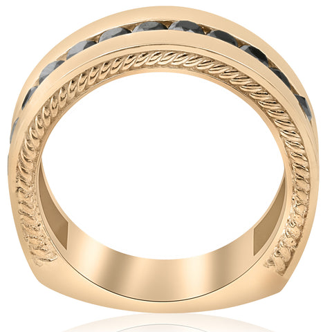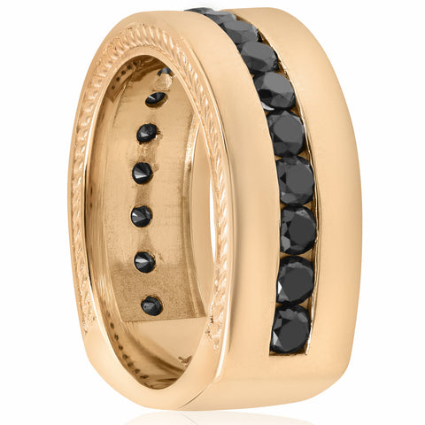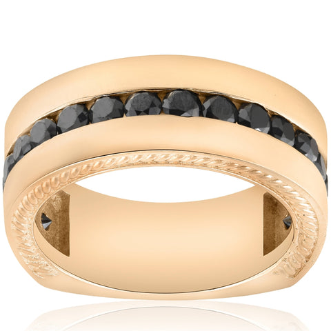 2 5/8ct Black Diamond Vintage Mens Ring 10k Yellow Gold 9MM Wide