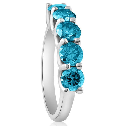 2Ct Blue Diamond Five Stone U Prong Wedding Ring in Gold Lab Grown