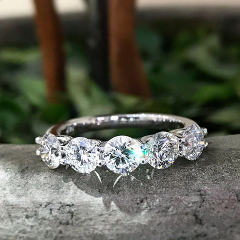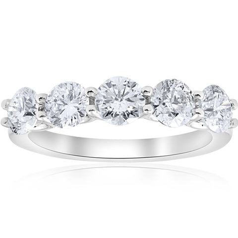 2cttw Diamond 5 Stone U Prong Wedding Round Cut Ring 14k White Gold