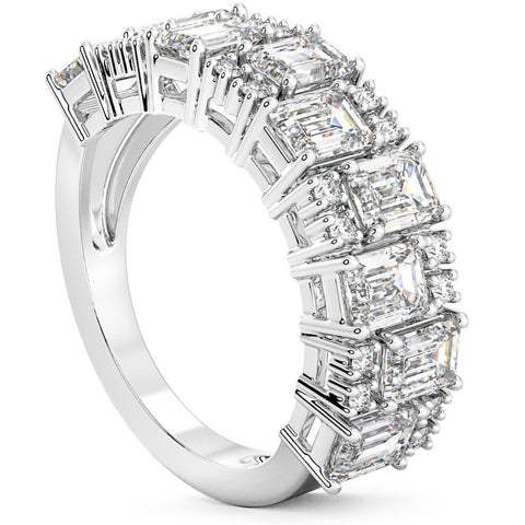 9Ct Emerald & Diamond Multi Row Diamond Anniversary Ring 14k Gold Lab Grown