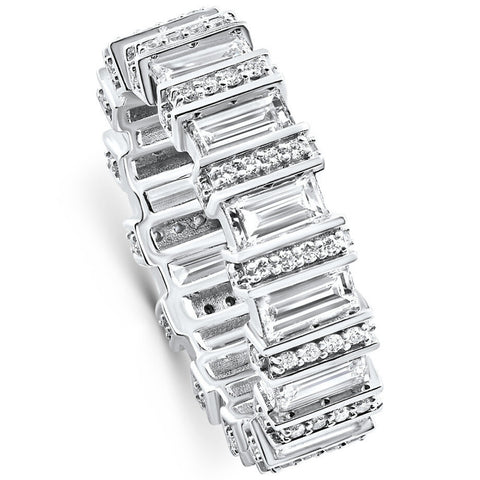 3Ct TW Emerald Cut Diamond Fancy Eternity Wedding Ring 14k Gold Lab Grown