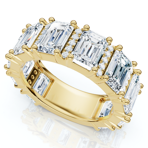 9Ct Emerald & Diamond Multi Row Diamond Anniversary Ring 14k Gold Lab Grown