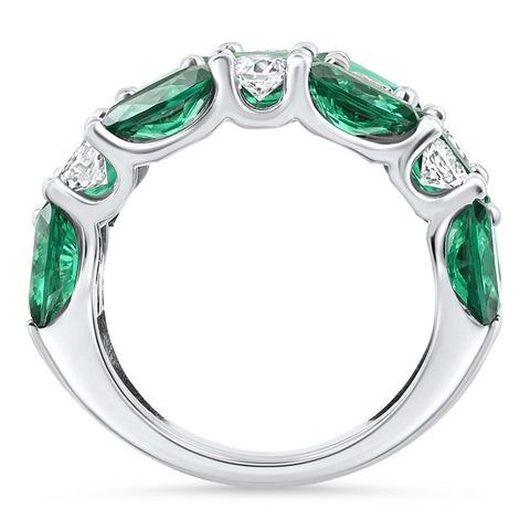 9Ct Emerald & Diamond Multi Row Diamond Anniversary Ring 14k Gold Lab Grown