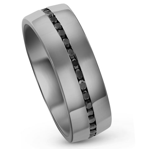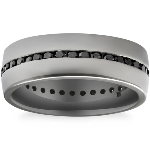 Men's 1 1/2Ct Channel Set Polished Black Gold Diamond Eternity Ring 7mm 14k Gold