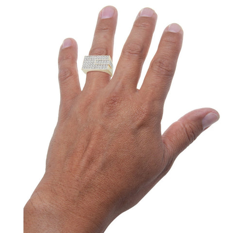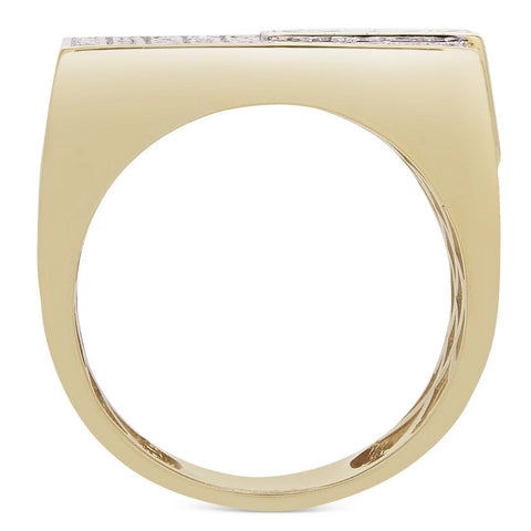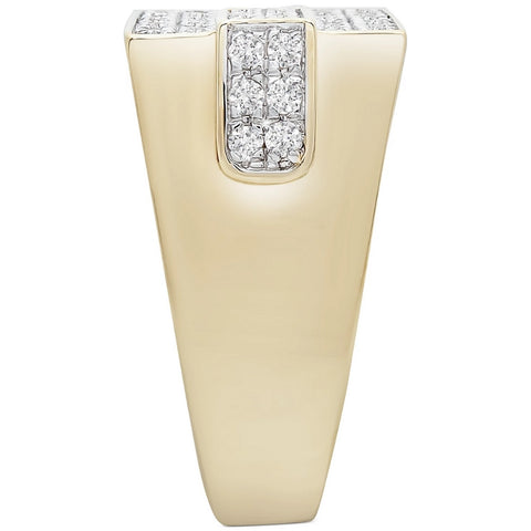 Men's 1CT Diamond Rectangle Cluster Ring 10k Yellow Gold