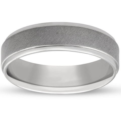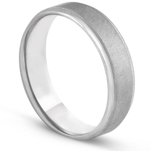 Mens 6mm Platinum Comfort Fit Brushed Ring Hand Carved Wedding Band