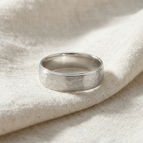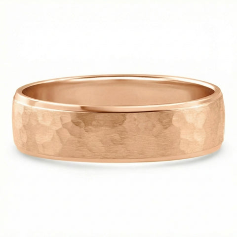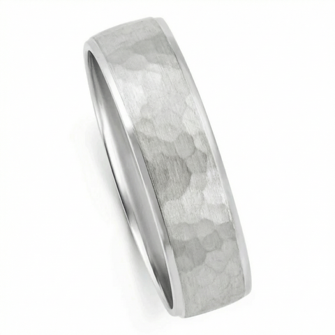 Men's Polished Hammered Wedding Band 14k Gold or Platinum