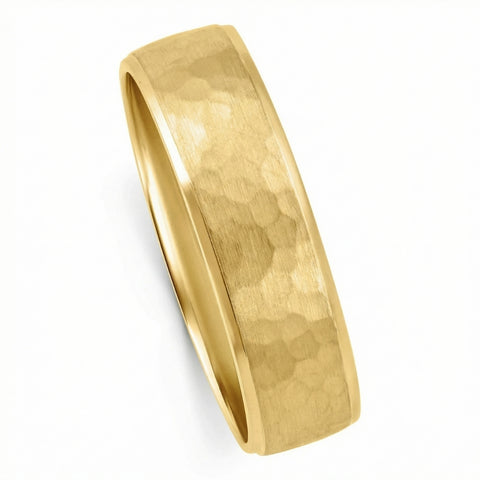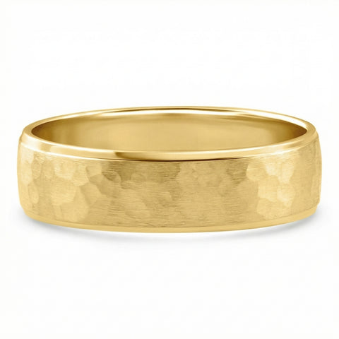Men's Brushed Hammered Wedding Band 14k Gold Ring