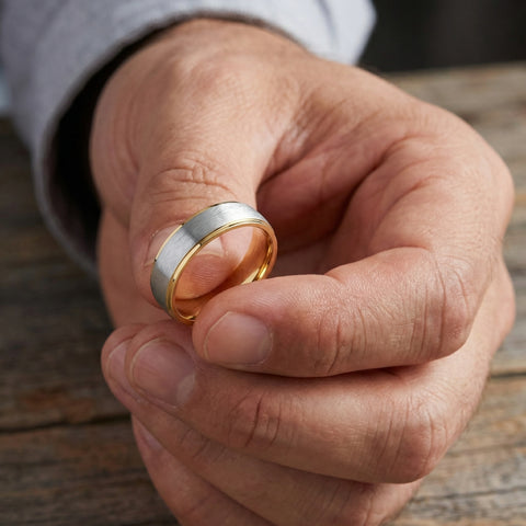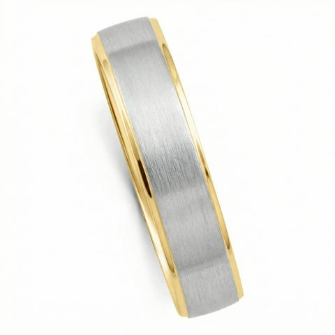 Men's Brushed Two Tone Wedding Band 14k Gold Ring