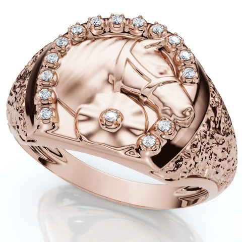 Men's Pinkie Horse Lucky Diamond Ring Gold Lab Grown