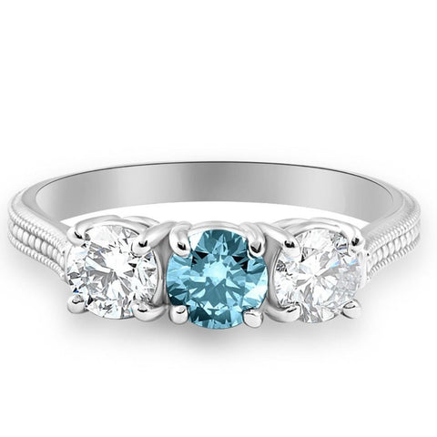 1 1/2Ct Blue Diamond 3-Stone Accent Engagement Ring in Gold Lab Grown