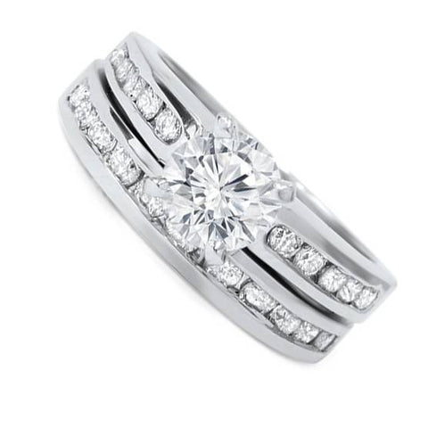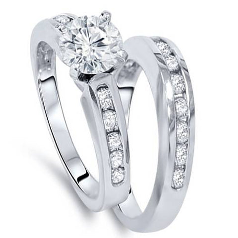 1 1/2ct Channel Set Diamond Engagement Ring Set 14K White Gold