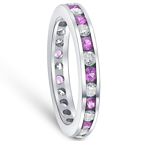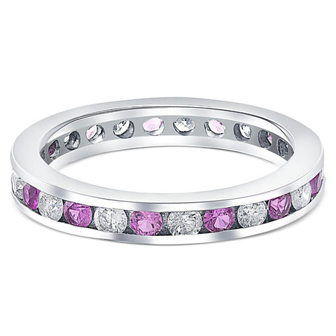 1 1/2ct Pink Sapphire & Diamond Eternity Channel Set Wedding Ring 14k White Gold