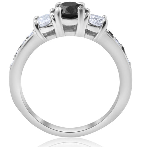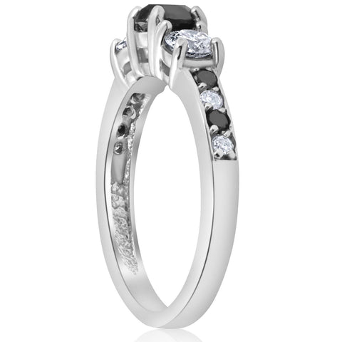 1 1/4CT Black & White Diamond Engagement 3-Stone Ring 10K White Gold