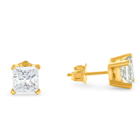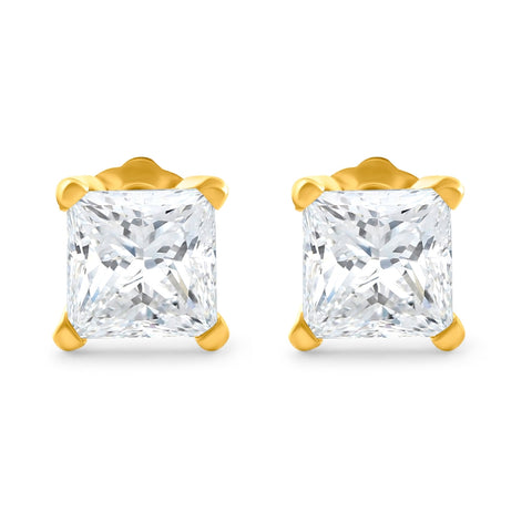 1 1/4Ct Princess Cut Diamond Studs in 14k White or Yellow Gold Lab Grown