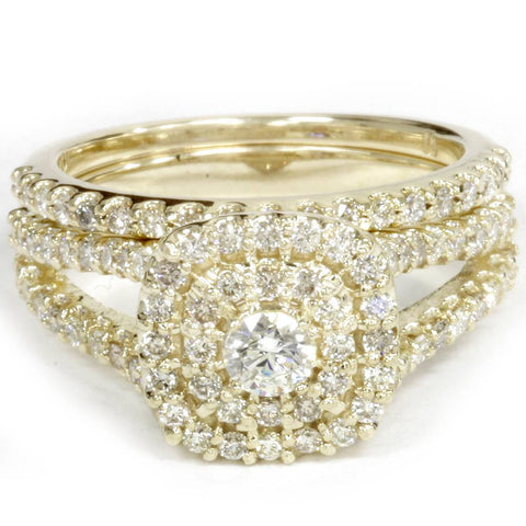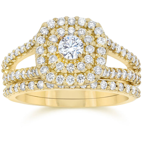 1 1/10CT Cushion Halo Diamond Engagement Wedding Ring Set 10K Yellow Gold