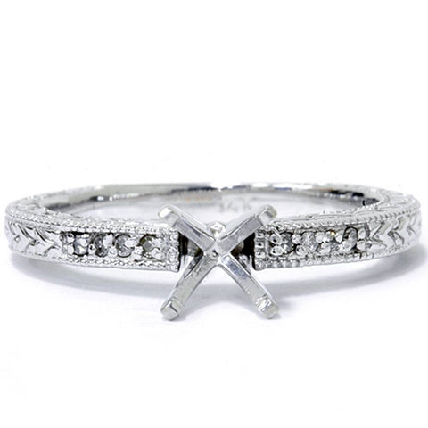 1/10ct Vintage Diamond Ring Setting 14K White Gold