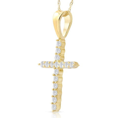 1/2 Ct Diamond Cross Pendant Necklace 18" Yellow Gold