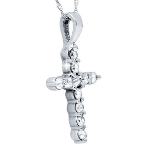 1/2ct Diamond 14K White Gold Cross Pendant Necklace