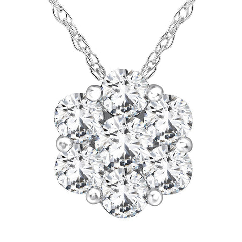 1/2ct Pave Fire Diamond Clustser Pendant 14K White Gold