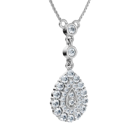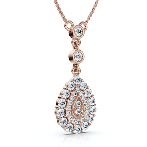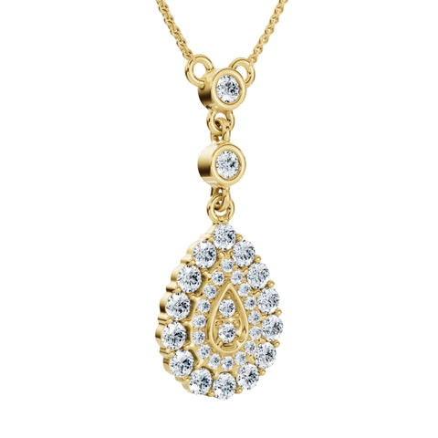 1/2Ct Pear Shape Dangle Bezel Penant Gold Necklace 1" Tall Lab Grown