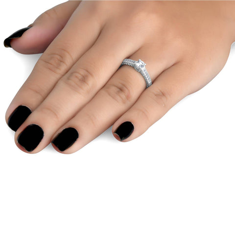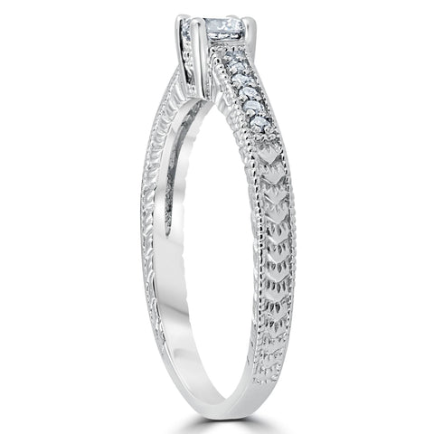 1/2ct Vintage Diamond Engagement Ring 14K White Gold