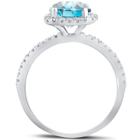 1 3/4 ct Blue Diamond Cushion Halo Engagement Ring 14k White Gold Lab Grown