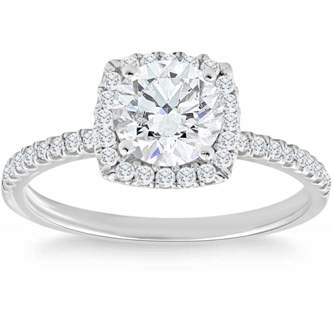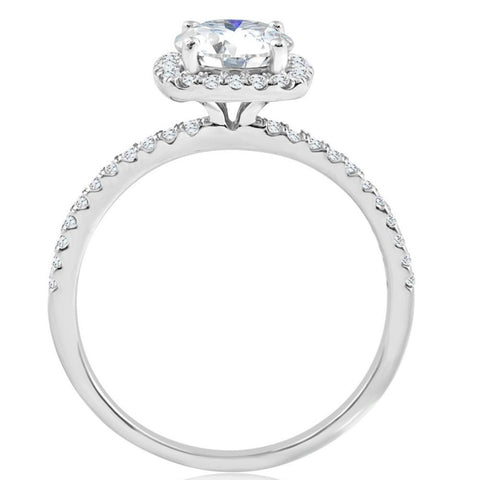 1 3/4 Ct TW Moissanite & Diamond Cushion Halo Engagement Ring in 14k White Gold