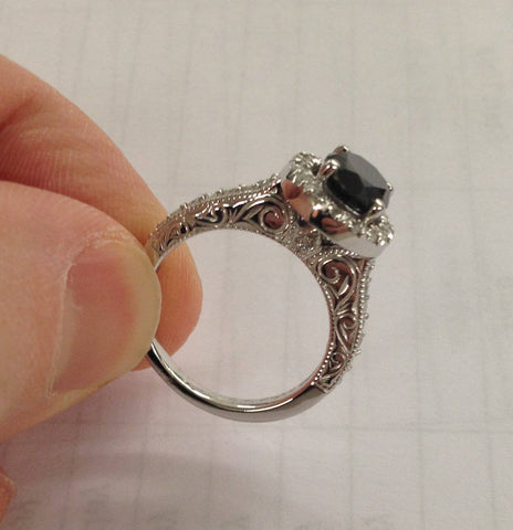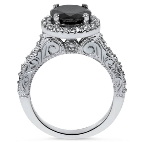 1 3/4ct Vintage Treated Black Diamond Engagement Ring 14K White Gold