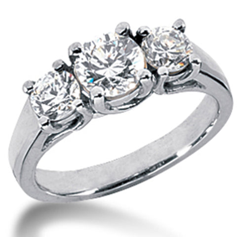 1 3/8ct Three Stone Diamond Ring 14K White Gold