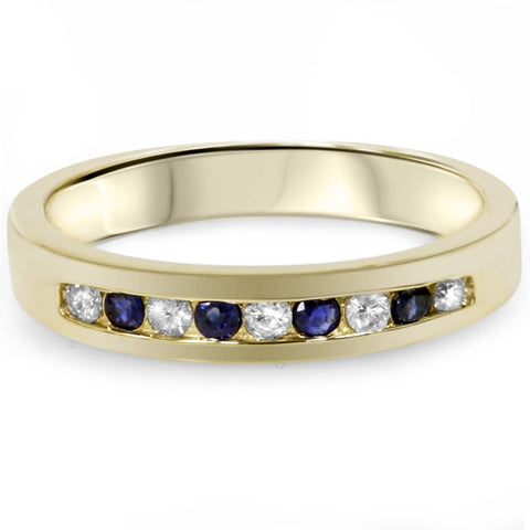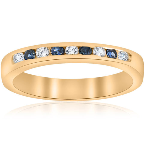 1/3ct Diamond & Blue Sapphire Anniversary Wedding Ring 14k Yellow Gold