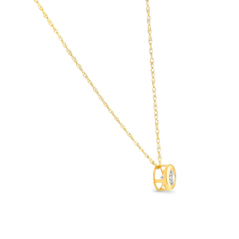 1/4Ct Diamond Bezel Pendant Solitaire Necklace 14k Yellow Gold Lab Grown