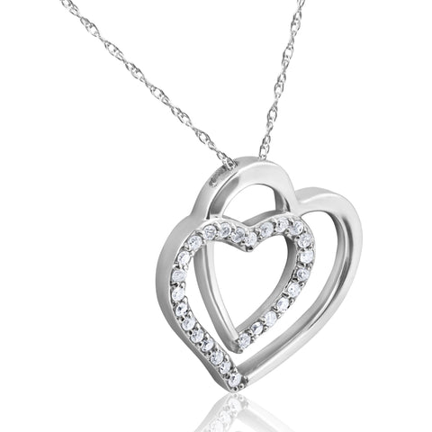 1/4ct Diamond Heart Shape Pendant 10K White Gold 3/4" Tall