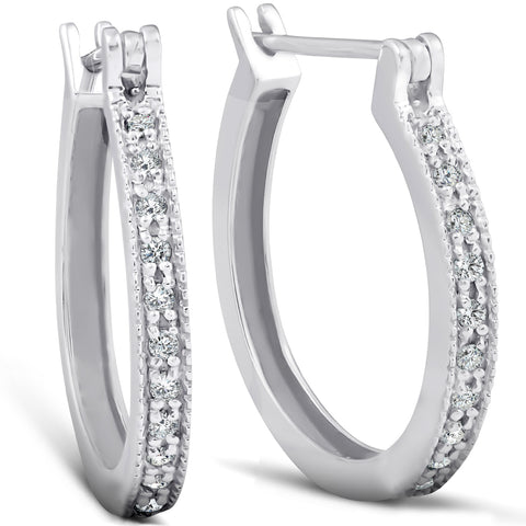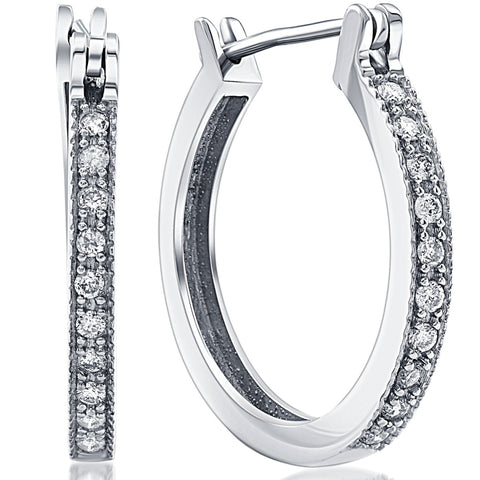 1/4ct Diamonds Hoops Milgrained 14K White Gold
