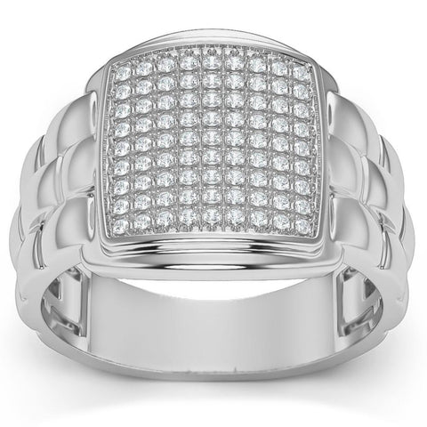 1/4Ct Pave Diamond Men's Wide Ring Lab Grown in White, Yellow, or Rose Gold